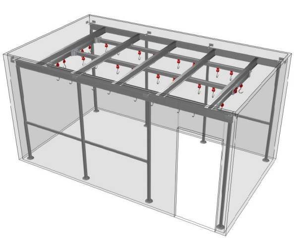 - 30 ganchos deslizantes (capacidad de carga: 300 kg cada uno)