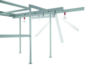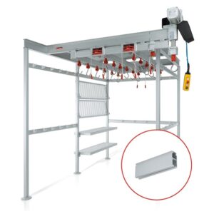 - 30 ganchos deslizantes (capacidad de carga: 300 kg cada uno)