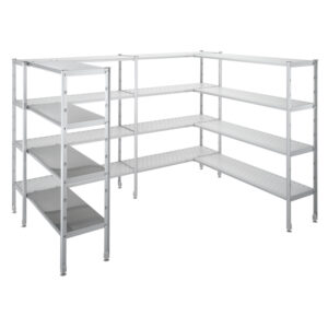 Nuestras estanterías modulares están fabricadas con una estructura de aleación de aluminio anodizado y superficies en polipropileno aptas