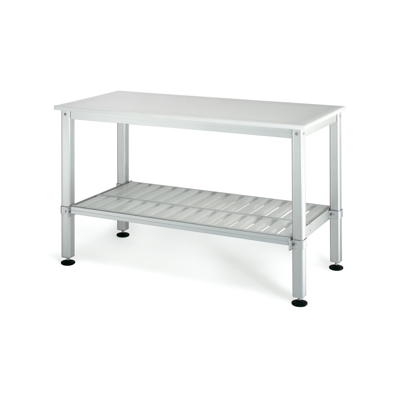 Nuestras mesas de corte y tajos están fabricadas con una estructura de aleación de aluminio anodizado y una superficie de polietileno alimentario, disponible en varios espesores según el uso requerido.